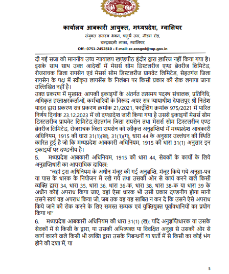 आबकारी आयुक्त ने अपने आदेश में कहा कि यह मामला—